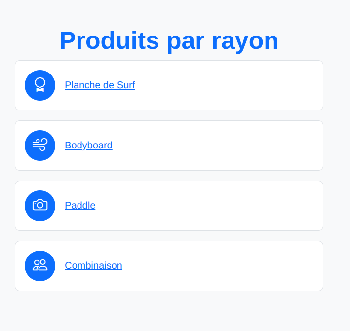 Affichage des produits avec des filtres de recherche pour une navigation fluide.